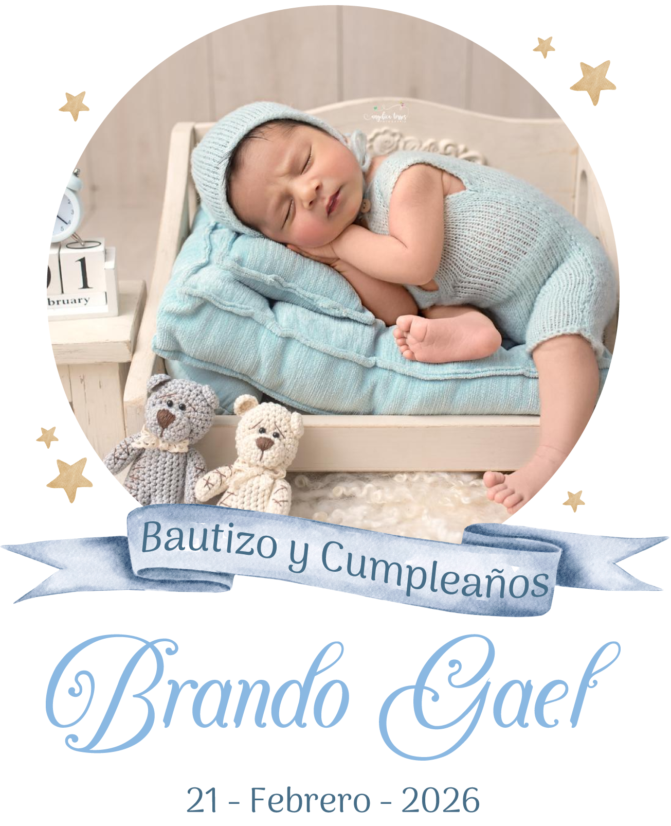 “Señor, hoy me presentan a ti para ser bañado con la gracia de tu amor, toma mi corazon y mantenme junto a ti”.